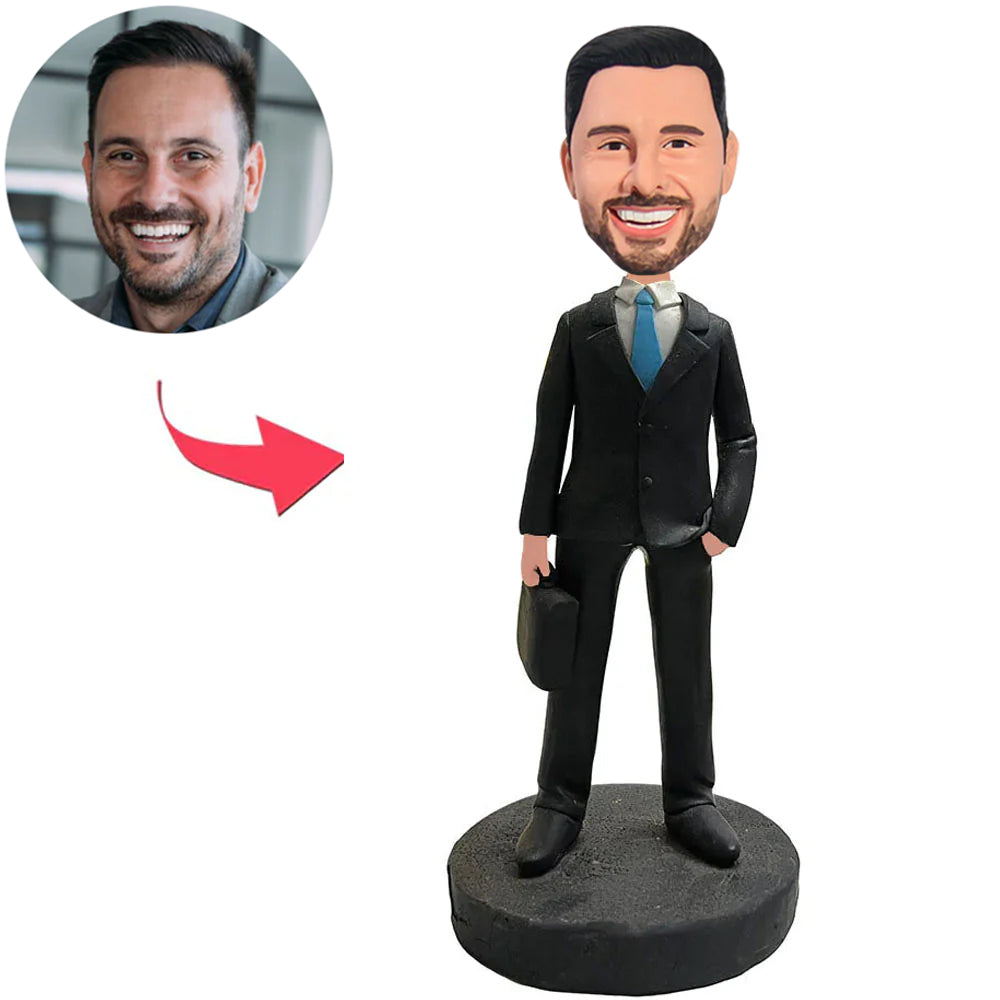 Geschäftsmann mit einer Tasche Benutzerdefinierte Bobbleheads mit graviertem Text