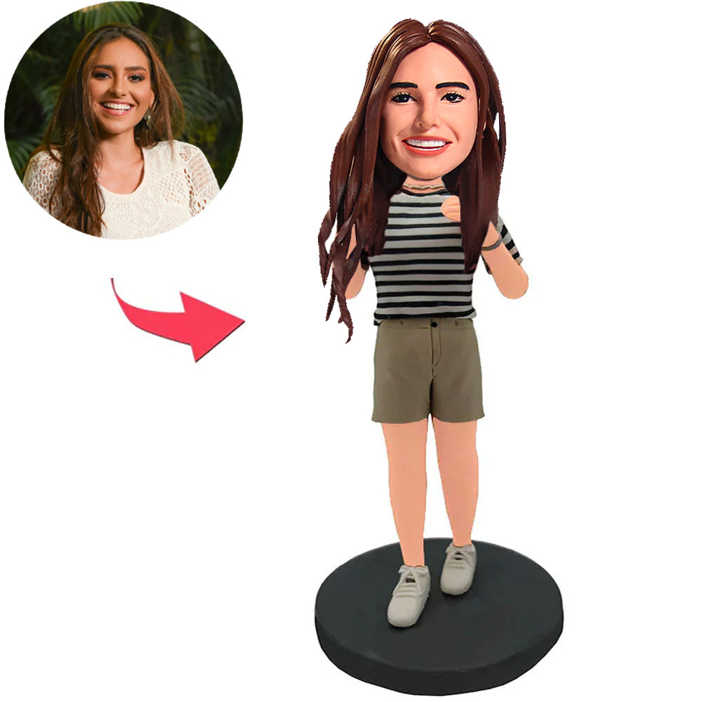 Lässige Glückliches Mädchen Kundenspezifische Bobbleheads mit eingraviertem Text