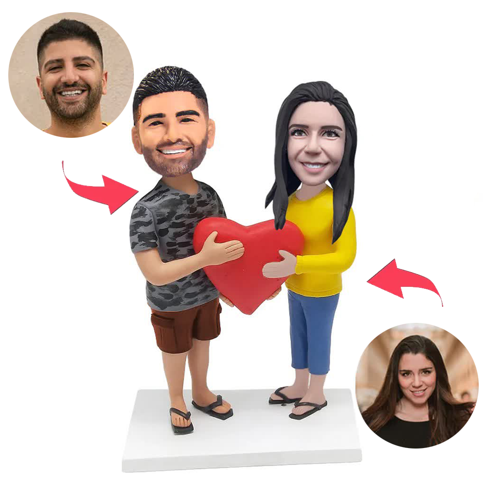 Lässiges Liebes-Herz-Paar Kundenspezifische Bobbleheads mit eingraviertem Text