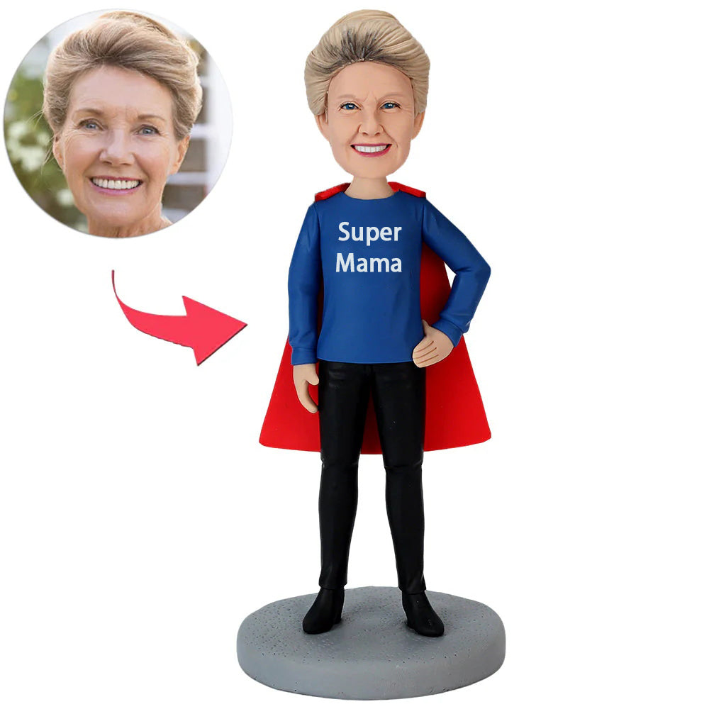 Geschenke Zum Muttertag Coole Supermama Im Blauen Hemd Benutzerdefinierte Bobbleheads