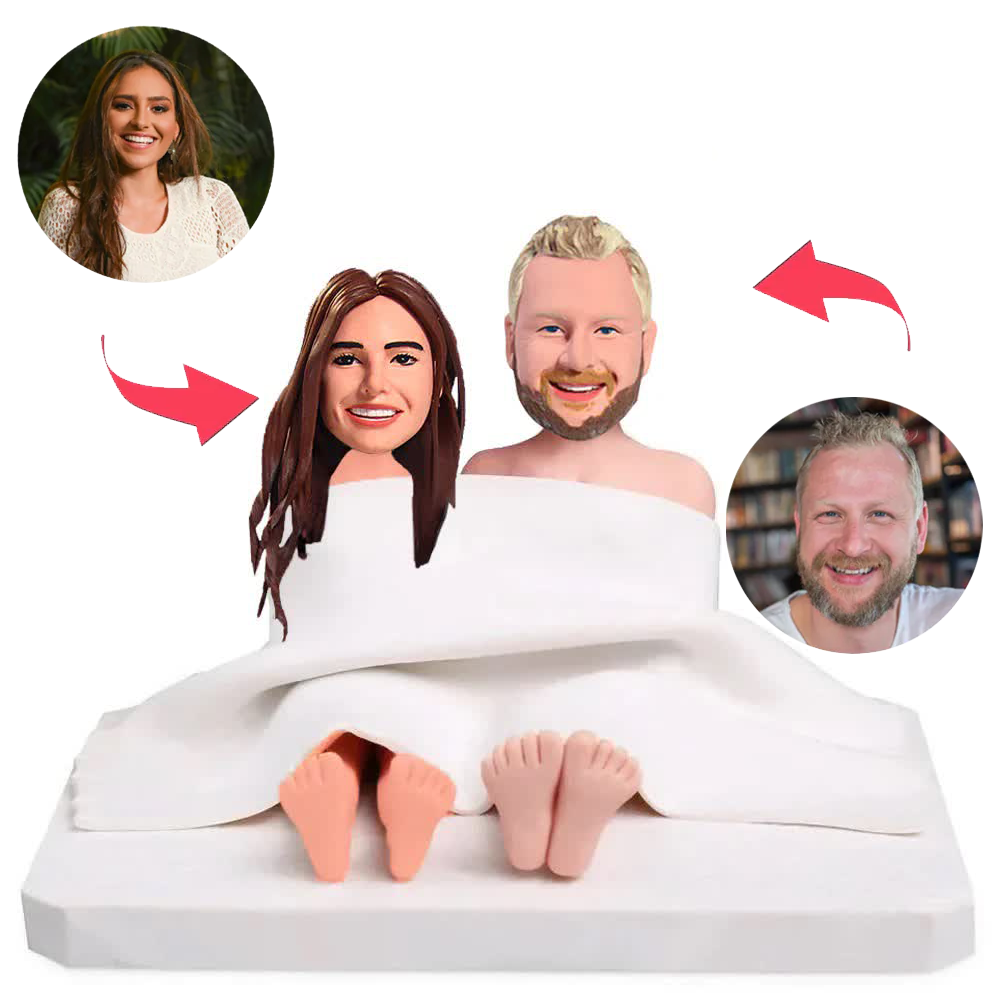 Paar mit Steppdecke bedeckt Kundenspezifische Bobbleheads mit eingraviertem Text