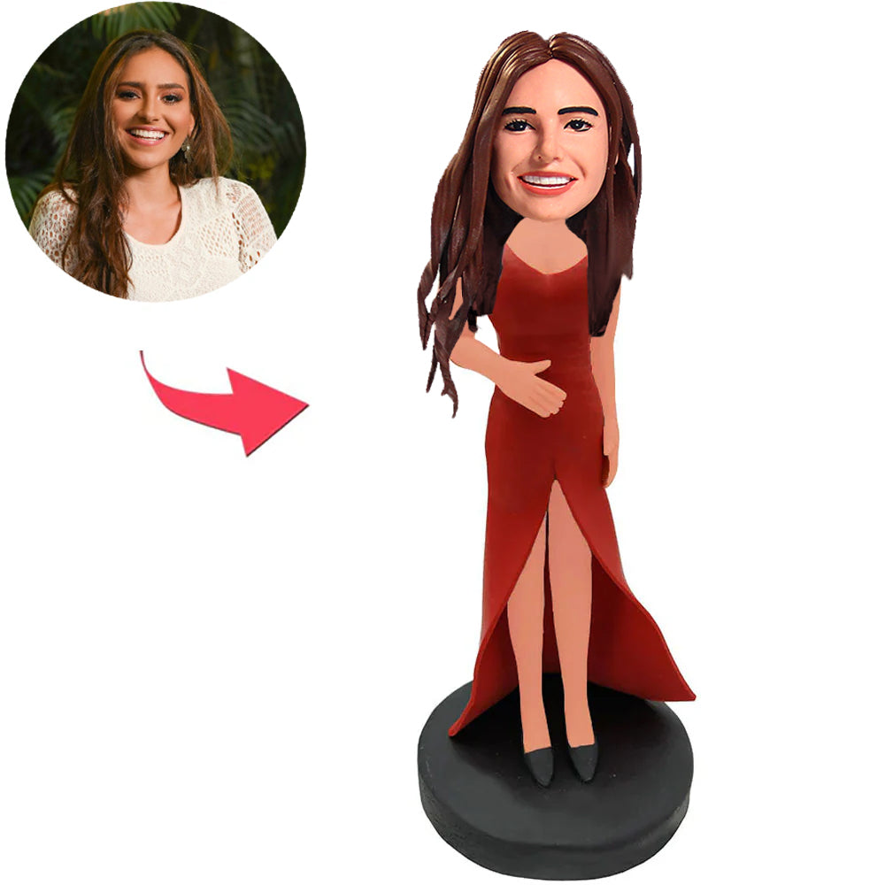 Modefrau im roten Kleid Benutzerdefinierte Bobbleheads mit eingraviertem Text