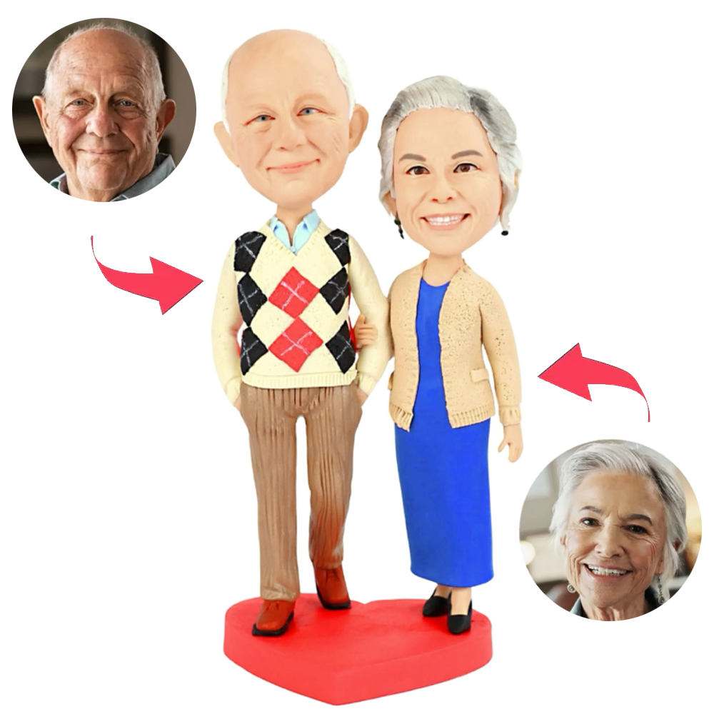 Glückliches älteres Paar in Pullovern Kundenspezifische Bobbleheads
