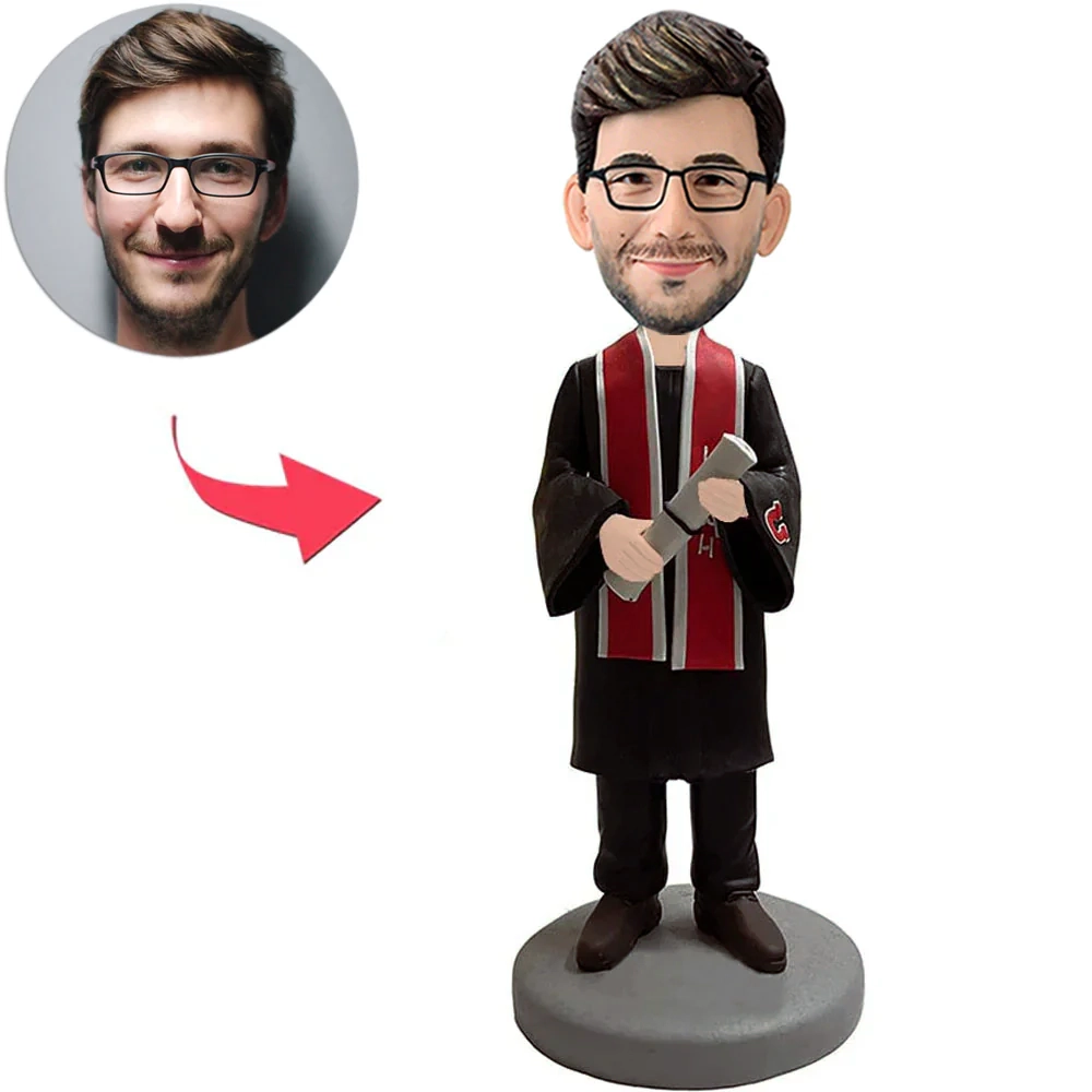 Glücklicher Abschlussjunge Kundenspezifische Bobbleheads mit graviertem Text