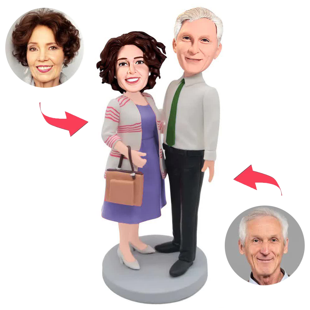 Glückliches altes Paar Kundenspezifische Bobbleheads mit eingraviertem Text