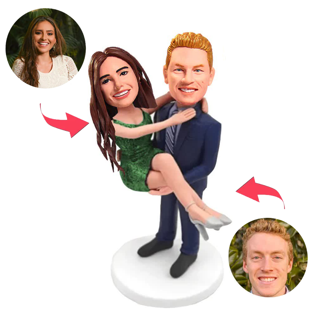 Mann umarmt Frau Kundenspezifische Bobbleheads mit eingraviertem Text