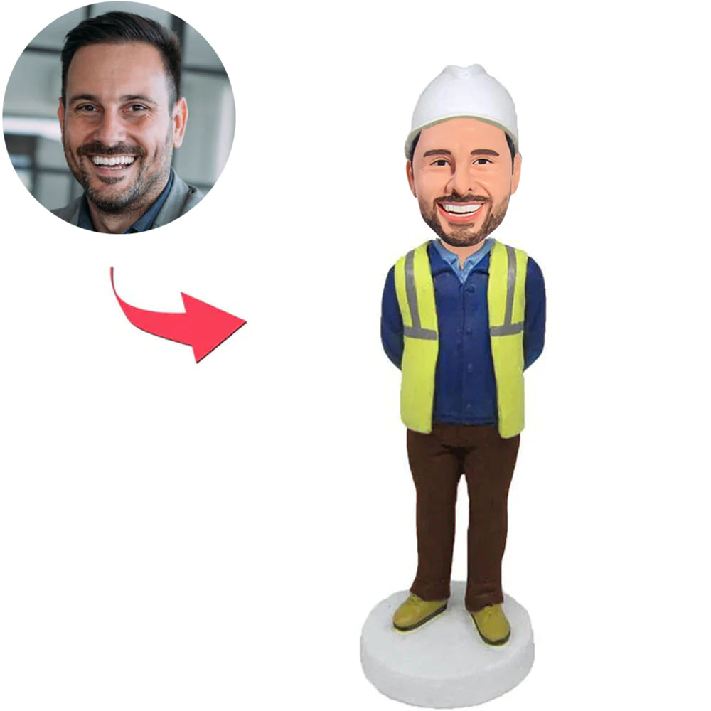 Forscher Kundenspezifische Bobbleheads mit graviertem Text Tragen Sie einen Schutzhelm