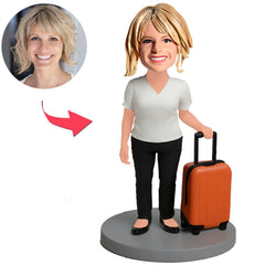 Frau mit Koffer Benutzerdefinierte Bobbleheads